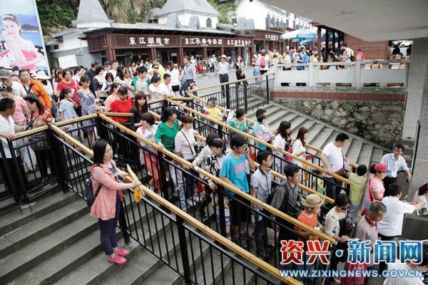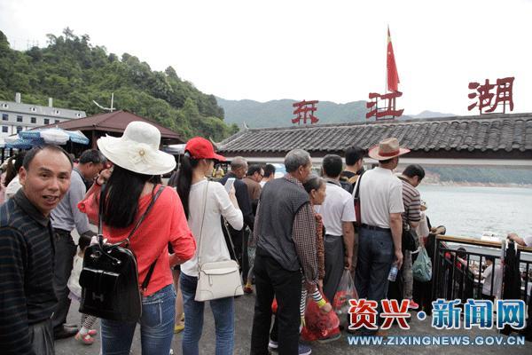 游客有序排队进入东江湖