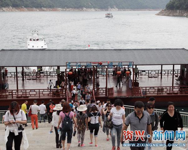 东江湖大坝码头游客如织