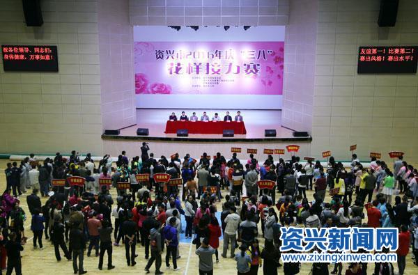 资兴新闻网讯(袁孟彪 陈希)3月8日,我市在体育馆举行庆“三八”花样接力赛,来自各部门单位、乡镇(街道)的400余人,组成60个队伍在这上演了一场运动“大战”。