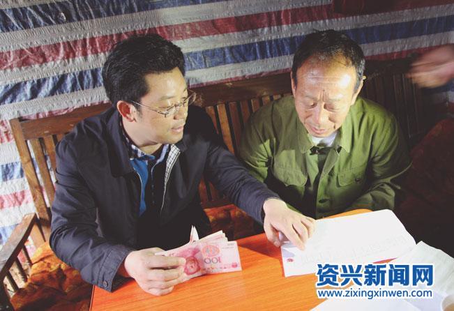 贺遵庆将扶贫助学金发到贫困户手中