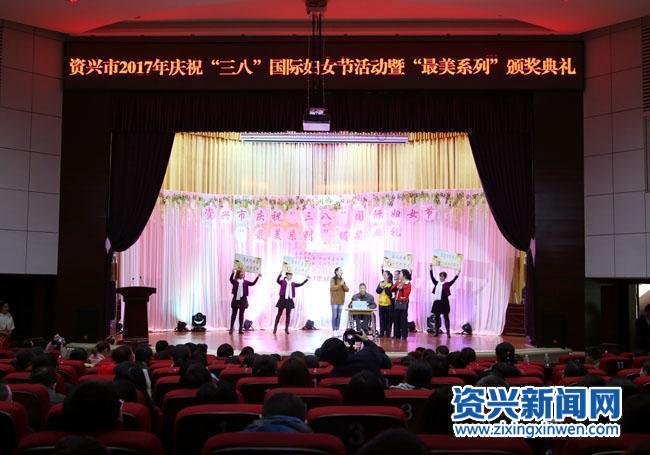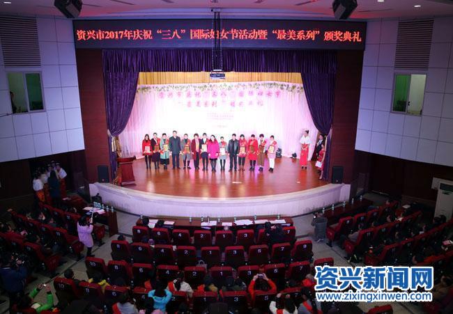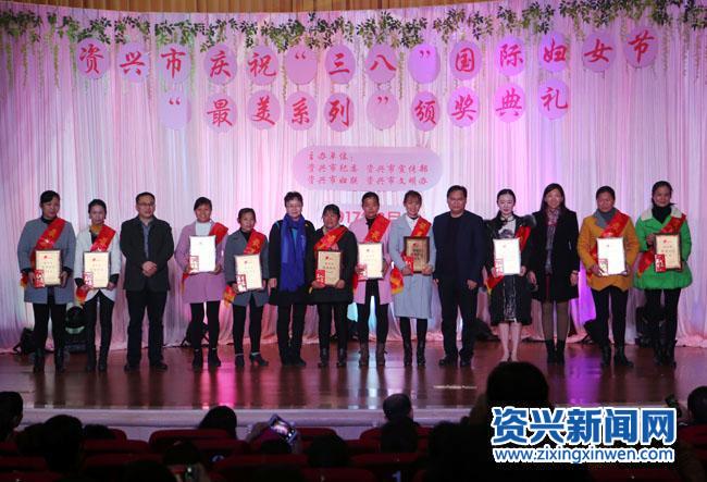 3月6日下午,资兴市2017年庆祝“三八”国际妇女节活动暨“最美系列”颁奖典礼在人民会堂举行。市委副书记、市长罗成辉为活动致辞,郴州市妇联副主席张荣萍,资兴市领导范培顺、郑艾萍、曹云玫、李典龙、陈一之、黄星、庞方和、谢献芳、黄守云、何超南为30名“最美湘女”、“最美孝老爱亲之星”、“最美创业之星”颁奖。