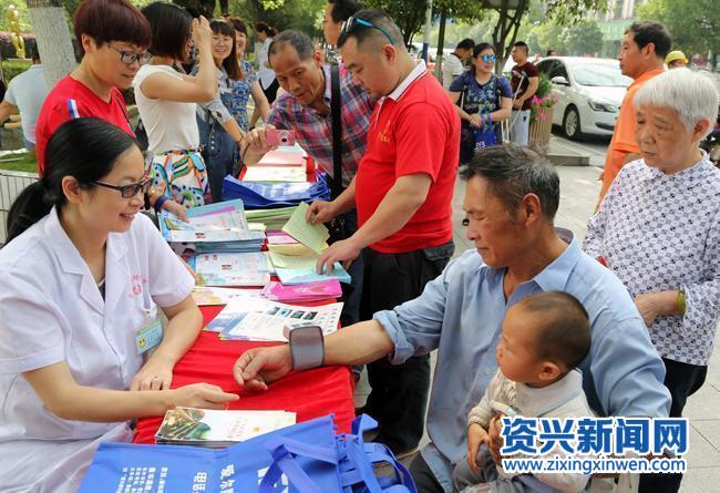 医务人员为市民免费测量血压
