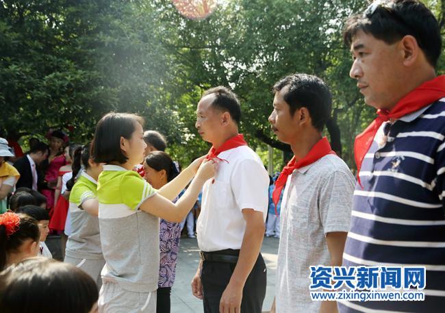 少先队员为“身边的好人”系上红领巾(谭卉 摄)