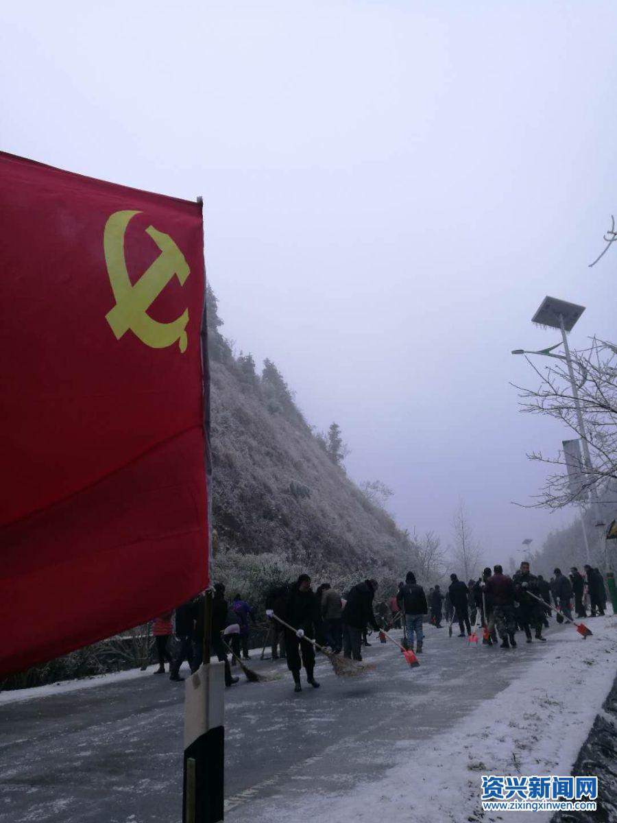 州门司:冰天雪地党徽红 铲雪除冰保畅通