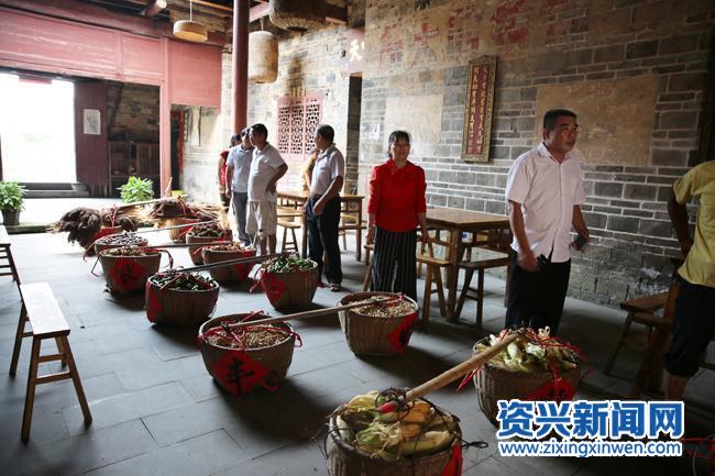 “尝新节”祈福仪式,村民们挑着丰收的农产品进入祠堂