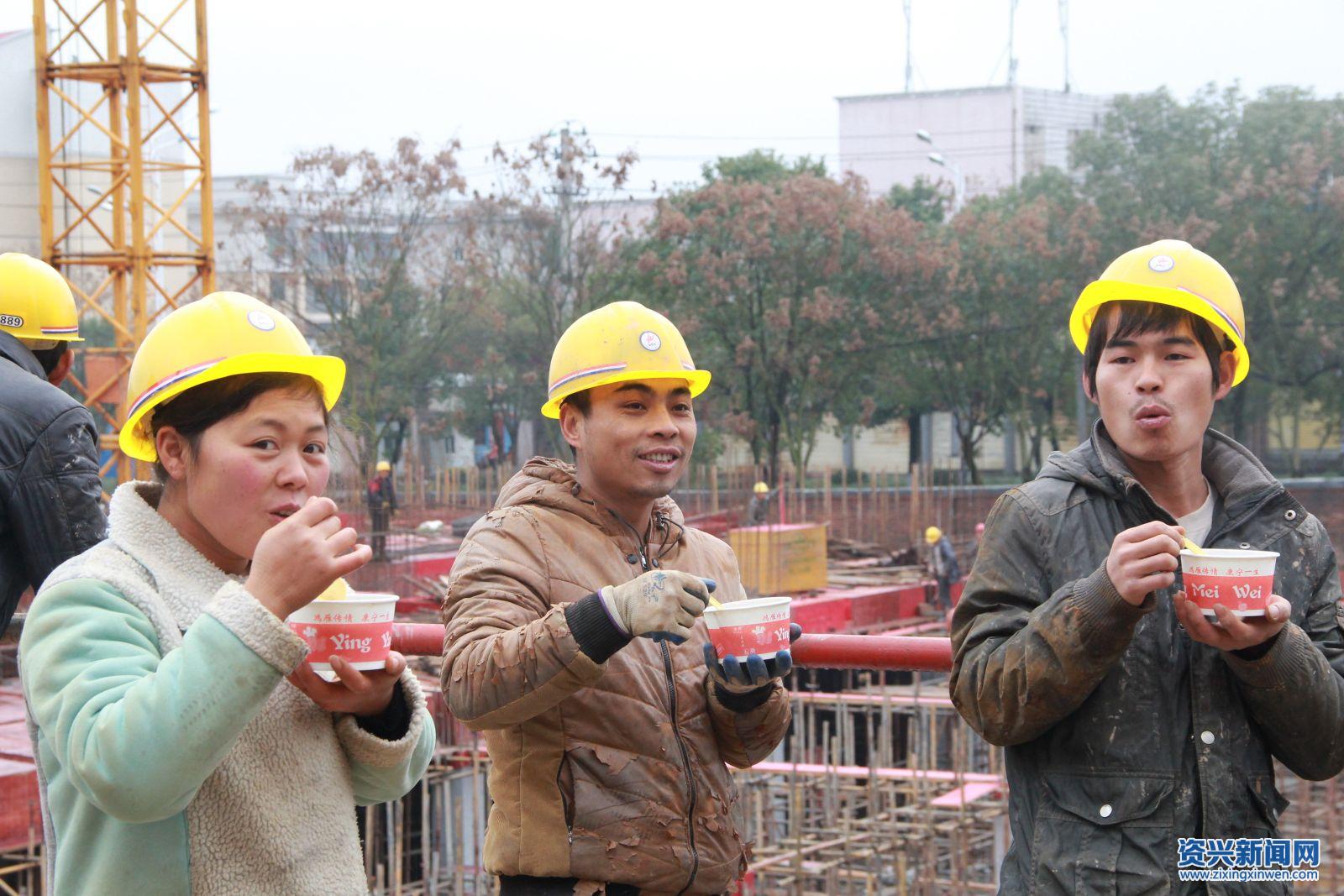 随后,志愿者们还来到建筑工地,为正在施工作业的工人们送上了热气腾腾的腊八粥。