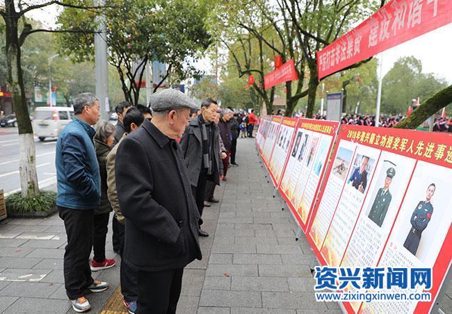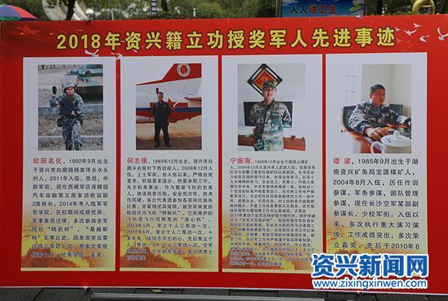 此次展览形象展示了张思德、邱少云、雷锋、苏宁、李向群、杨业功、林俊德、张超等全军英模以及2018年资兴籍立功授奖军人先进事迹。据初步统计,2018年资兴籍军人立功(三等功以上)16人,授奖13人。
