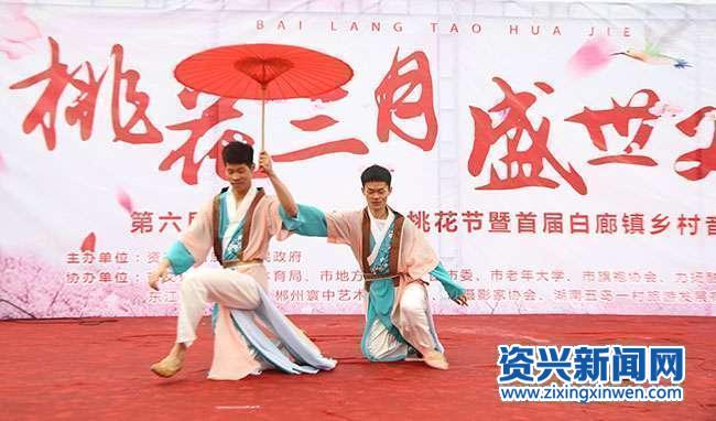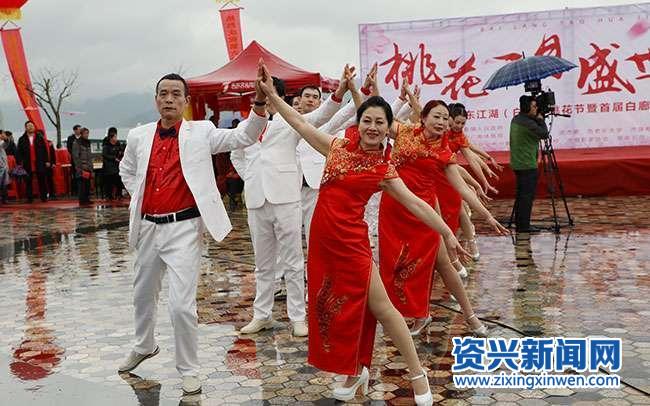 桃花含笑春风里,旗袍款款步姿精。快闪结束后,由资兴市老年大学带来的《金婚旗袍秀》,展开了一场桃花与旗袍的邂逅。随后,双人舞《花语》、街舞《BREAKING SHOW》等乡村音乐节文艺节目精彩纷呈,现场叫好声、鼓掌声此起彼伏,台下观众纷纷举起手中的手机、相机记录下精彩的瞬间。