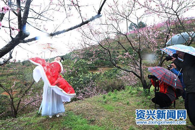 东江湖畔白廊镇境内万亩桃花花香四溢,或漫山怒放,或临水吐芯。每年春天,遍野桃花灼目盛放,像绯红的海洋;雪白的梨花、李花间杂其间,宛如霞海中泛起的浪花,徜徉花海,如置仙境。当天的开幕式后,尽管下着小雨,意犹未尽的游客还纷纷在桃花前自拍、合影留念。