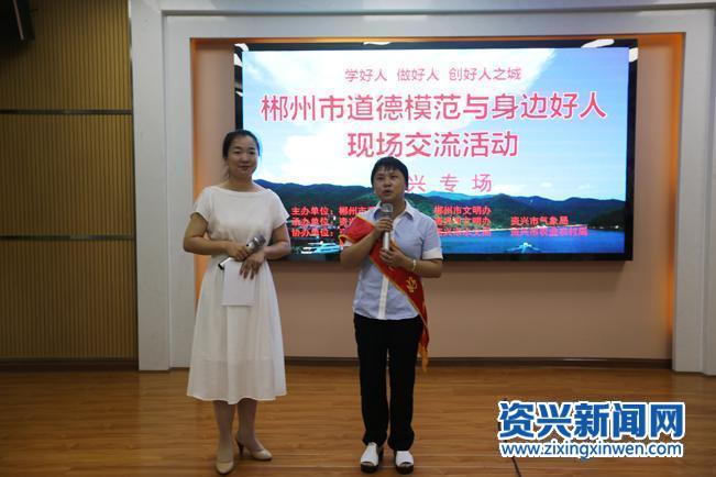 本网讯(通讯员 袁杭)5月16日,郴州市道德模范与身边好人现场交流活动资兴专场在我市特殊教育学校举行。