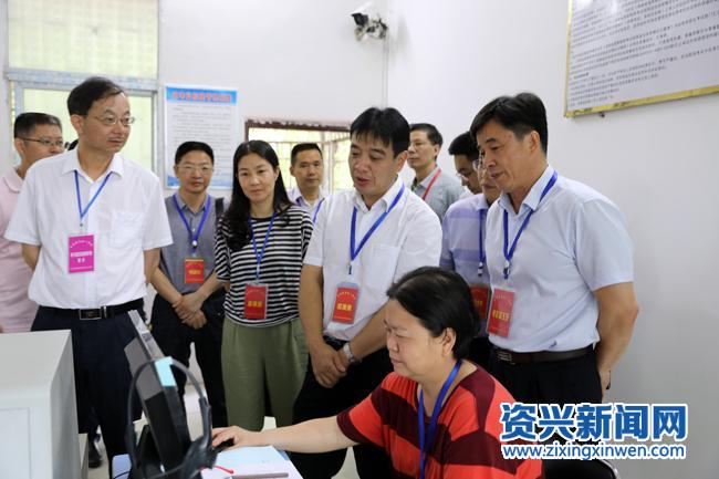 罗成辉一行在考点监控室巡视