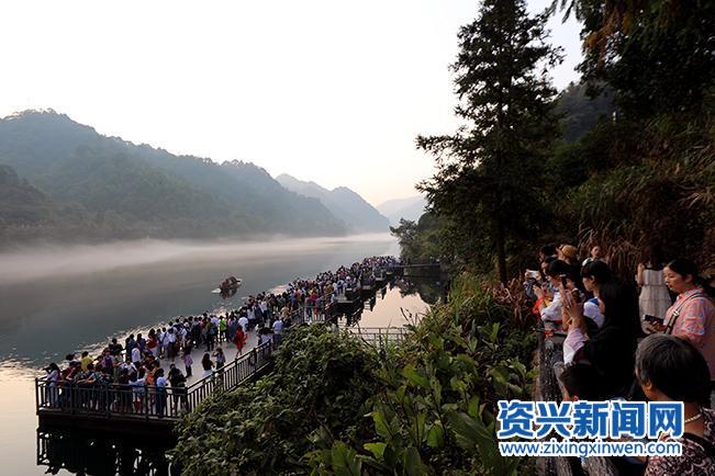 资兴新闻网讯(记者 朱孝荣)10月4日清晨,游客在资兴市欣赏“雾漫小东江”美景。小东江是有名的摄影创作基地,虽然秋分已过,但晨雾依旧迷人,每天都吸引大量游客前来观光拍摄。今年“十一”黄金周,小东江更是“一票难求”,带火了资兴其他景区,推动了资兴假日经济发展。