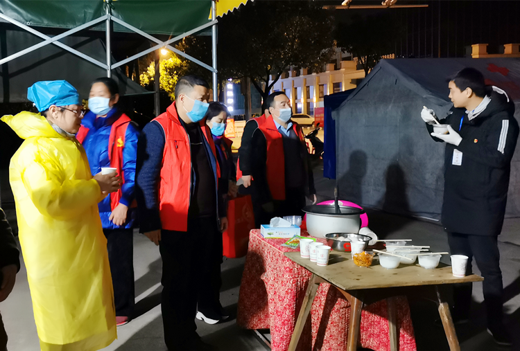 “经过一个晚上的值班,天气比较寒冷,感谢志愿者他们把热乎乎的粥给我们送来。有大家的理解和支持,我们在前面再辛苦也觉得值了,现在一身都温暖起来了。”喝下一碗热粥后,已值守一夜的东江街道工作人员廖恭宽感动地说。