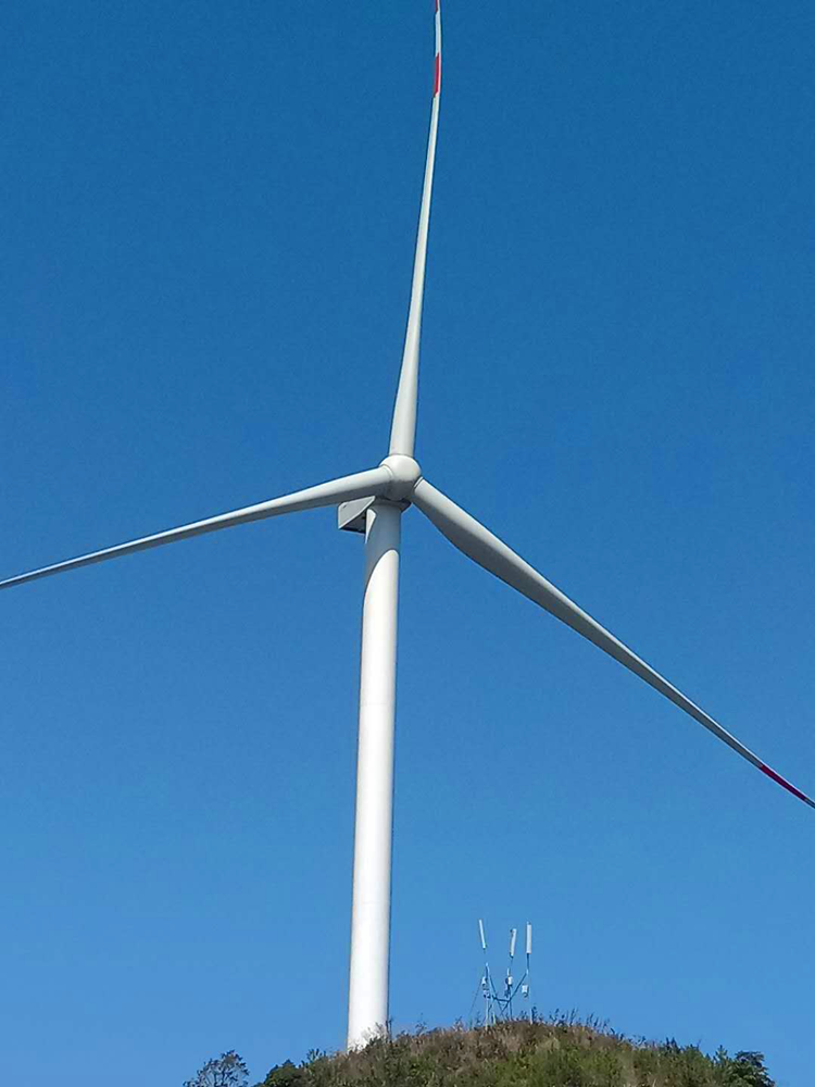 创新分散排水方式,解决设备运输难题。项目使用的风叶是单机容量2.5MW叶轮直径64.5米风力发电机组,然而,要运输到海拔约1000多米的金指仙等山上,成为了施工建设的第一道难题。为此,建设者们根据风叶长度,修筑了高标准的道路,以此解决运输问题,并采取多设置分散排水涵管的方式,29公里的道路安装分散排水涵管6000米,解决道路因雨水冲刷而产生塌方问题。