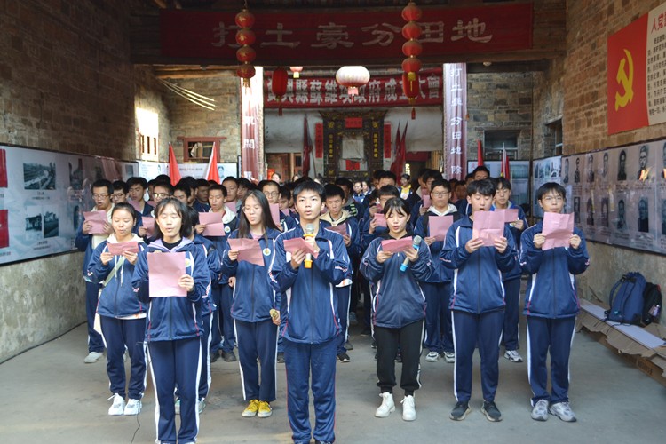 同学们在老师的带领下,先后开展了徒步活动,参观红色革命教育基地“资兴县苏维埃政府旧址”和湘南红色美术馆,朗诵经典诗文、宣读誓词《红心向党流华湾》,还表演了自创节目。