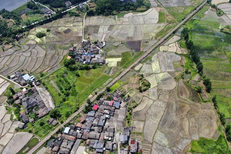 近日,资兴市唐洞街道香花村的农田与远山、树林、农房、小路等交相辉映,构成一幅美丽的田园画卷。