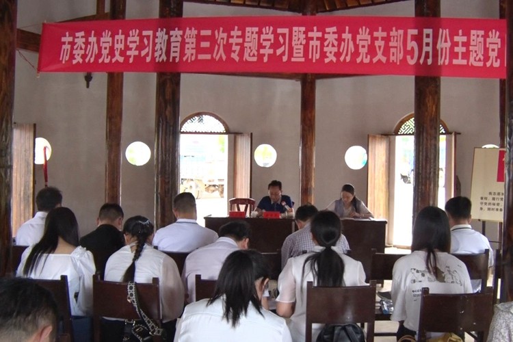 5月28日,资兴市委办开展党史学习教育第三次专题学习研讨暨党支部5月份主题党日活动,学习了第三次专题学习部分指定重点学习篇目《党必须勇于自我革命》等,并进行了学习心得体会的发言交流,还先后参观了布田革命事迹陈列馆、湘南起义彭公庙联席会议旧址,聆听了红色革命故事。