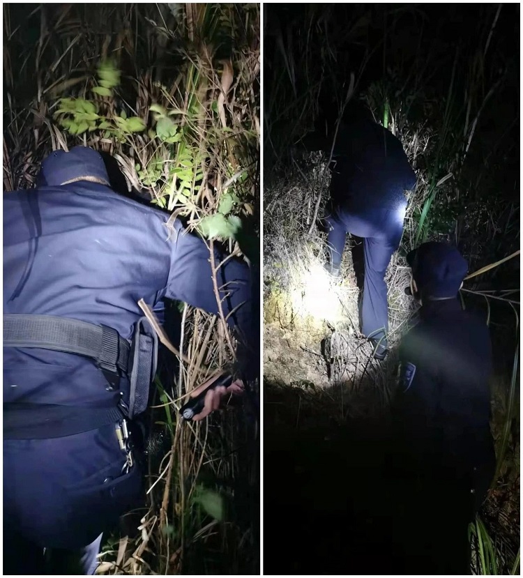 当晚,辅警张树勇在附近巡逻时接到村民反映,对面山上传出“救命”的声音,可能是有人被困在了山上。核实相关情况后,张树勇果断决定展开紧急救援,迅速赶往事发地点,并一边给派出所值班民警打电话请求支援,一边和村民一起勘察地形,寻找被困老人的方位。经过一个小时搜救,张树勇在山林半山腰灌木丛里发现了被困的老人。大家一边用柴刀清出一条救援小路,一边接力搀扶老人,将其救下山并送往就近的卫生院。