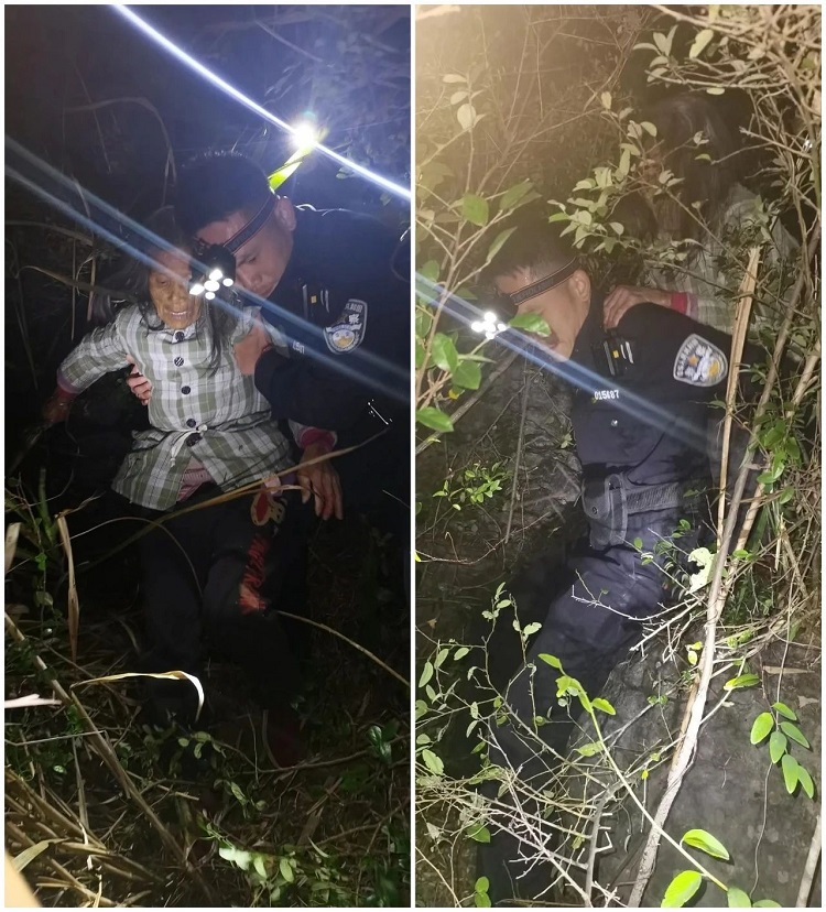 据了解,被困老人叫肖康秀,今年82岁,当天下午3点上山砍柴时迷路了。天黑后,慌乱中又踩空掉进了灌木丛中,无法动弹,幸好有及时赶来的辅警和村民,才被救下。