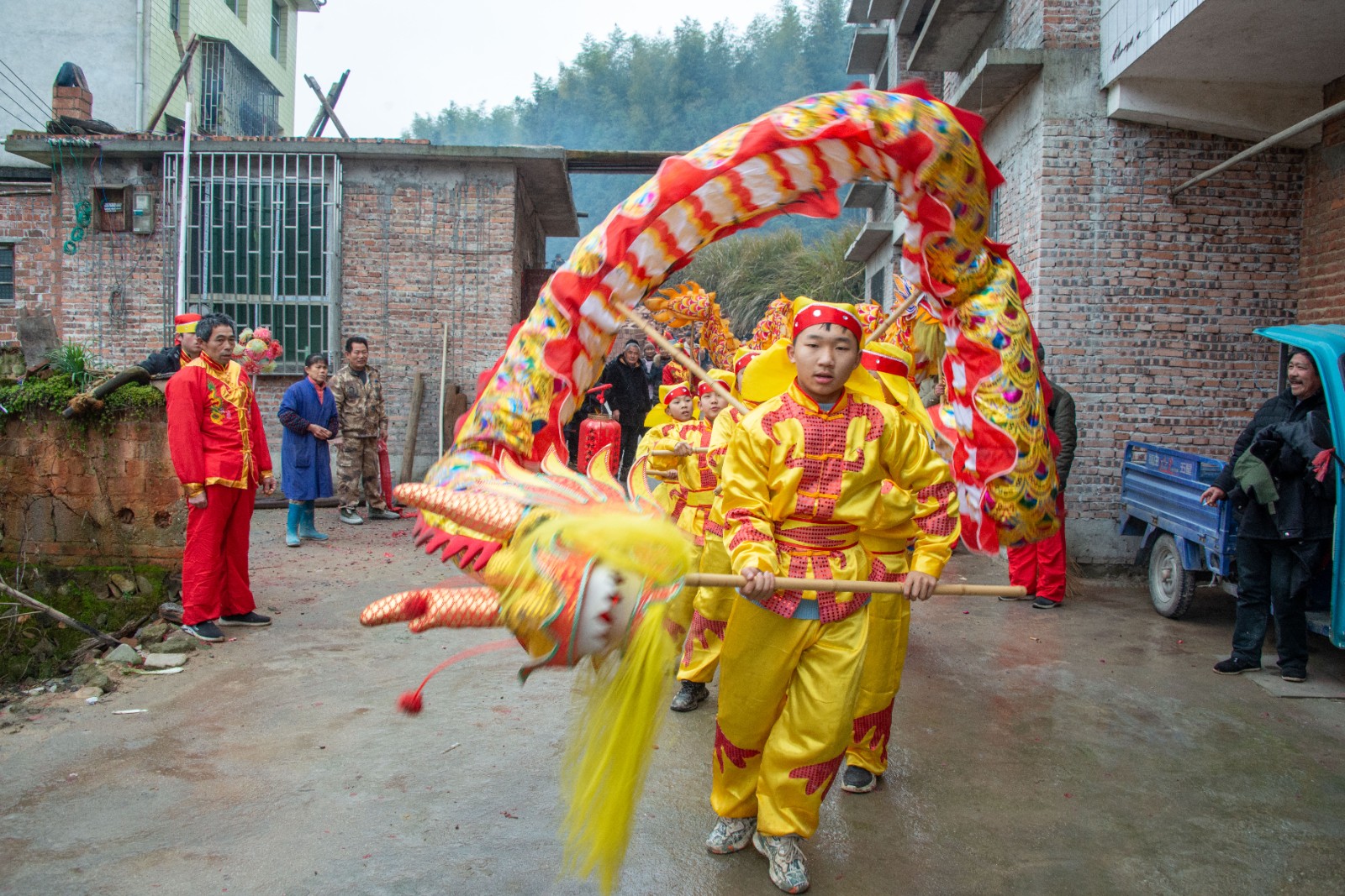 舞龙,是中华民族优秀的传统文化,是人们表达美好愿望的一种方式,以舞龙祈祷来年风调雨顺,四季丰收。眼前一红一黄的两条“龙”舞得正欢,村民们纷纷拿出手机拍照留影。这支少年舞龙队的队员大都是学生,最大的15岁,最小的才8岁。
