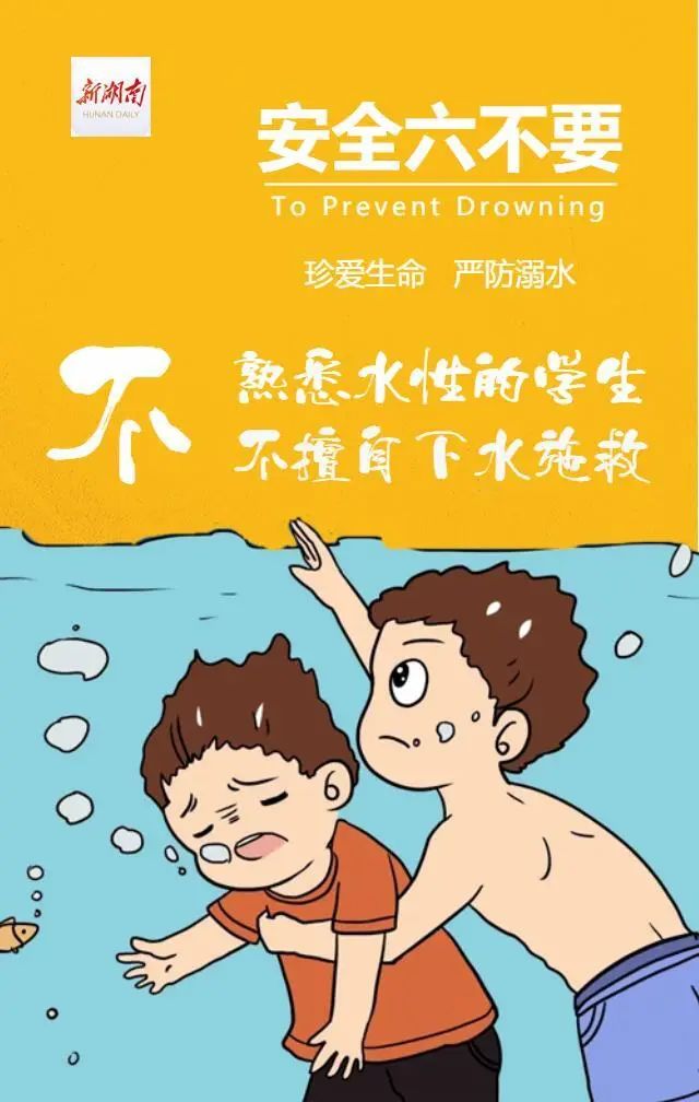 5、施救者若不熟悉水性或不了解现场水情,不应轻易下水,应呼救或报警。未成年人不宜下水救人。