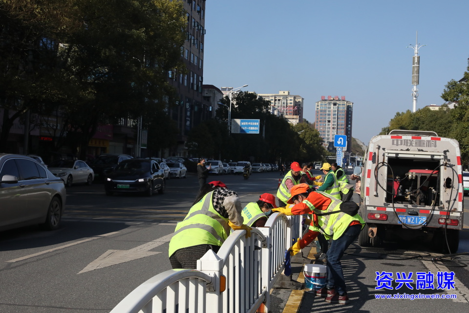 针对护栏、公交站台等“城市家具”,环卫工人使用高压水枪深度冲洗,再以抹布细致擦拭,确保公共设施洁净如新。