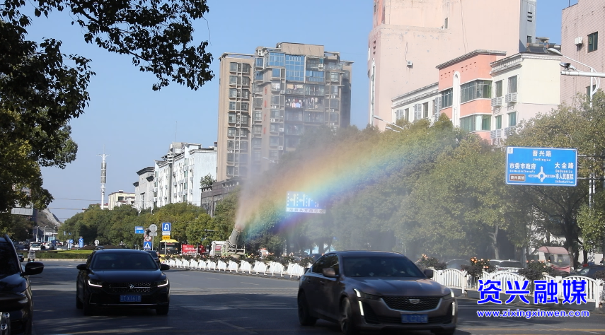 1月9日,市环卫中心工作人员驾驶一辆雾炮车缓慢行驶在资兴大道沿线,一阵阵细密的水雾轻盈升腾,带着空气中的浮尘缓缓落在地面,雾炮车驶过的地方,空气随之变得清新。