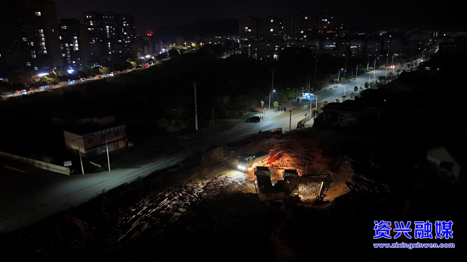 据了解,该路口最大的工程量就是清运土方,为了抢抓进度,施工方避开早晚上下班高峰期,昼夜轮番作业。当晚9点,现场仍然是一片热火朝天的景象。