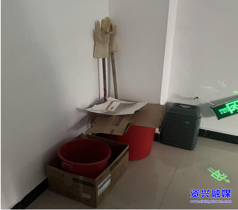 隐患问题:二楼楼梯间疏散通道摆放杂物。