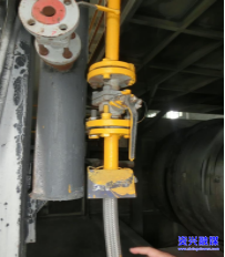 隐患问题:1.燃气用具连接用金属包覆软管外壳破损,存在漏气风险。
