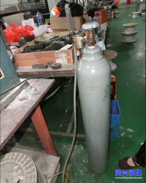 隐患问题:1.安全疏散标志被遮挡的隐患。2.作业场所氩气钢瓶未采取防气瓶倾倒措施。