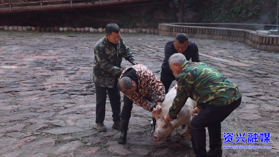腊月的资兴,处处洋溢着迎年的热闹。唐洞街道大王寨村,百余位游客循着浓郁年味而来,沉浸式体验杀年猪、吃杀猪饭的传统民俗。按照当地习俗,杀年猪需择良辰吉日,村民们将肥猪赶到院中,众人合力摁住后,宰杀时齐喊吉祥语,祈愿来年六畜兴旺、五谷丰登。新鲜宰杀的土猪按部位精细分割,掌勺的廖秀成师傅,既是经验老道的杀猪匠,更是烹制杀猪菜的好手,自16岁学艺至今,四十余年的坚守让他的手艺愈发精湛。