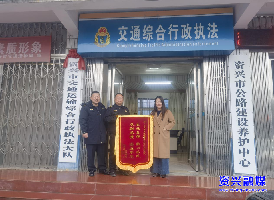 近日,市民杨女士将一面印有“失而复得 热心为民 尽职尽责 感恩不尽”的锦旗送到市交通运输综合行政执法大队,感谢工作人员倾力相助,帮她找回遗失的贵重物品。