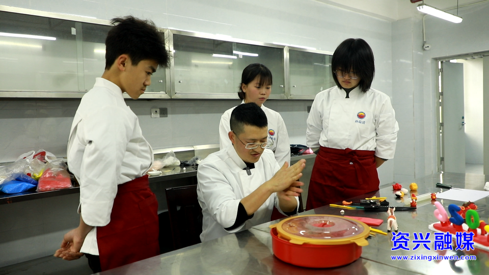 实训现场暖意融融,空气中飘散着面团温润的清香。面点专业老师杨坐林细致示范、耐心讲解,将面塑制作的核心要领与艺术精髓一一拆解。他麻利地取出面团掌心揉圆,搓出流线型马身,指尖轻压出脊背弧度;另取小团,捏出马头、修长马颈,用竹签斜插固定;马尾以剪刀细细剪出丝缕,根根飘逸;最后黑芝麻点睛,白面团塑蹄,一匹形态可爱的小马驹顷刻跃然掌上。在老师的悉心指导下,同学们全神贯注、巧手创作。揉、搓、捏、压、剪、刻、粘、拼,指尖翻飞间,一块块彩色面团被赋予生命与灵气。