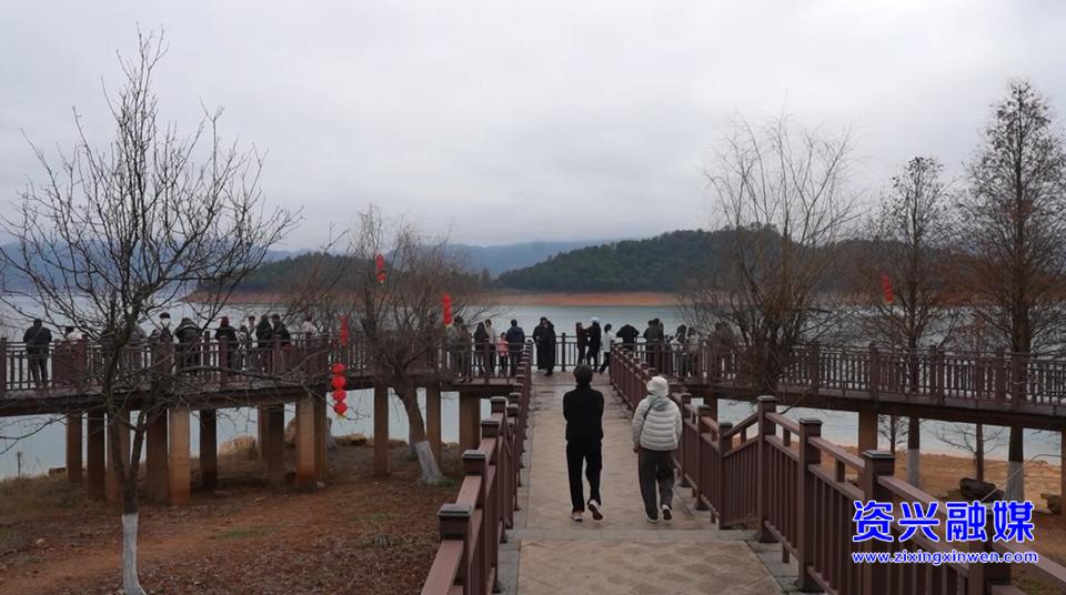 环湖栈道上,游人三三两两缓步前行,不时驻足观景、拍照留念,定格新春美好瞬间;码头边,游船有序停靠,游客们乘船泛舟湖面,看波光粼粼、渔舟点点,领略东江湖的灵动之美。快门声、欢笑声与湖水潺潺声交织,奏响新春动人乐章。