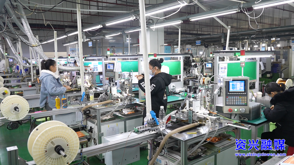 同样热火朝天的奋战场景,也出现在资兴市弘电电子科技有限公司生产车间。百余名员工各司其职,全力赶制订单,自动化生产线高速运转,一批批电感线圈、AI服务器线圈、无线充电线圈等产品有序下线。该企业聚焦通讯、新能源、汽车电子等领域,集研发、生产、销售于一体,凭借过硬技术与优质产品,当前订单量持续爆满,发展势头强劲。