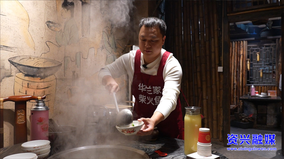 资兴华兰家餐饮创始人退役军人欧强介绍:“通过长期做品质、做口碑,一年的坚持,我们华兰家柴火鱼在郴州这边就终于火了,有很多来东江湖旅游的顾客都慕名过来打卡。”