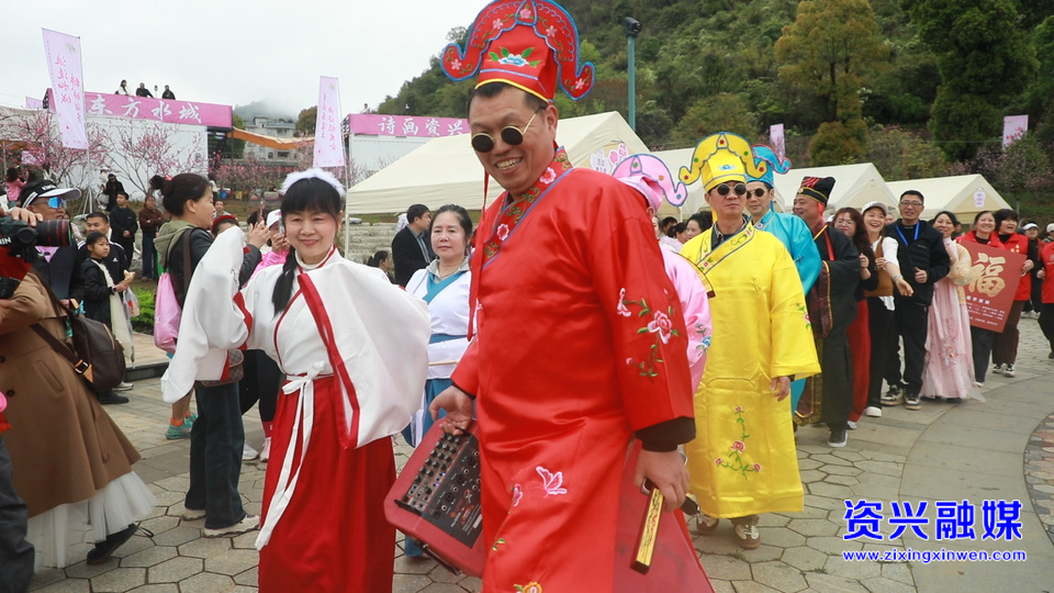 徒步进行的同时,桃花广场上的趣味活动持续升温。媒婆说媒环节中,诙谐幽默的互动引得现场笑声不断;嘉宾相亲环节里,参与者们在轻松的氛围中交流互动,现场温馨而热烈。徒步竞赛奖、优胜奖、活动参与奖以及传播流量奖、服饰创意奖、最佳上镜奖等奖项的评选同步推进,大家纷纷拍摄视频、分享朋友圈,用镜头记录徒步乐趣与白廊美景,进一步放大了活动的影响力,为活动增添了竞技的激情与收获的喜悦。