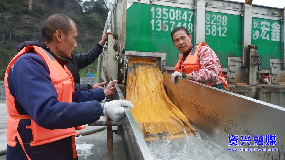 村企合作不仅壮大了集体经济,也为村民提供了家门口的就业岗位。有着十余年养鱼经验的村民谭伟南,如今成为基地的养殖工人,负责日常投喂与管护。“我对这份工作还是很满意的,因为就是在家门口。我希望这个行业越来越好,企业越做越大,我们员工也跟着水涨船高,工资福利都上涨。”谭伟南笑着说。