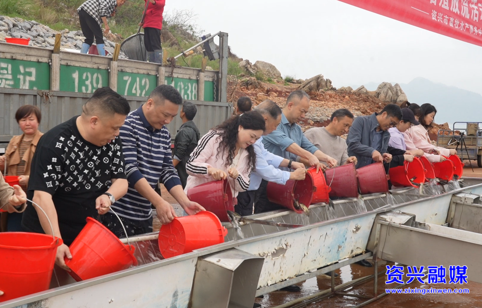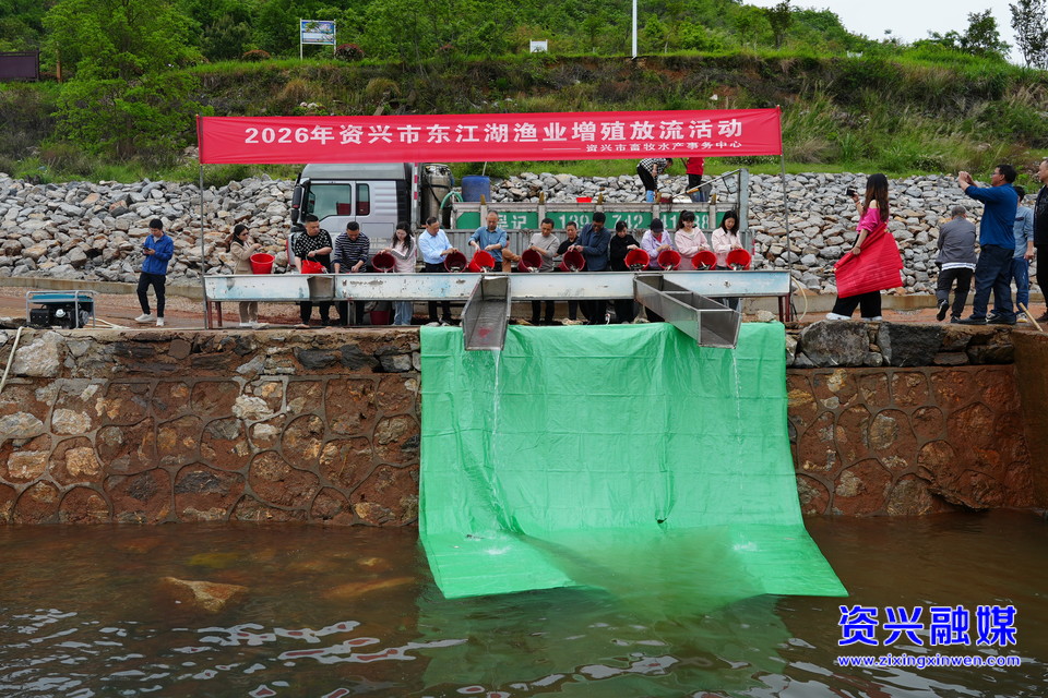 4月17日,春风拂过东江湖,碧波荡漾。在东江湖增殖放流平台上,一桶桶鱼苗顺着滑槽跃入水中,溅起层层水花。当日,郴州市农业农村局、郴州市畜牧水产事务中心、资兴市农业农村局及资兴市畜牧水产事务中心联合开展增殖放流活动,共投入资金14万元,投放鱼苗90万尾。其中,青鱼、草鱼、鲢鱼、鳙鱼等“净水鱼类”80万尾,倒刺鲃苗10万尾,均由东江湖水产发展服务中心培育。