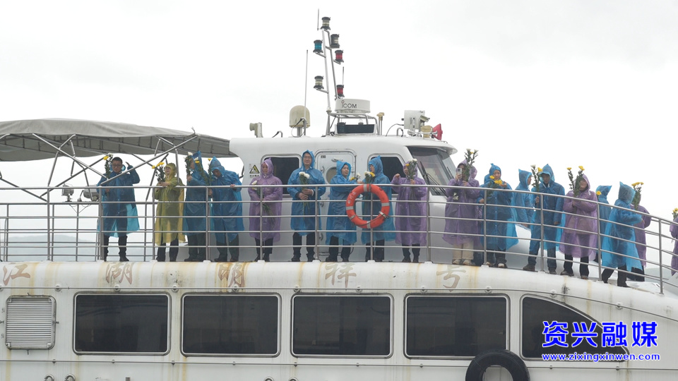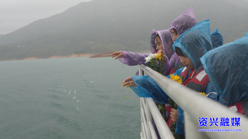 祭奠仪式最后,众人手持鲜花,肃立船舷,依次将洁白花朵洒向碧波荡漾的东江湖,寄托无尽哀思。三声长笛鸣响,船队绕岛缓行,碧水悠悠,告慰长眠于此的英魂。