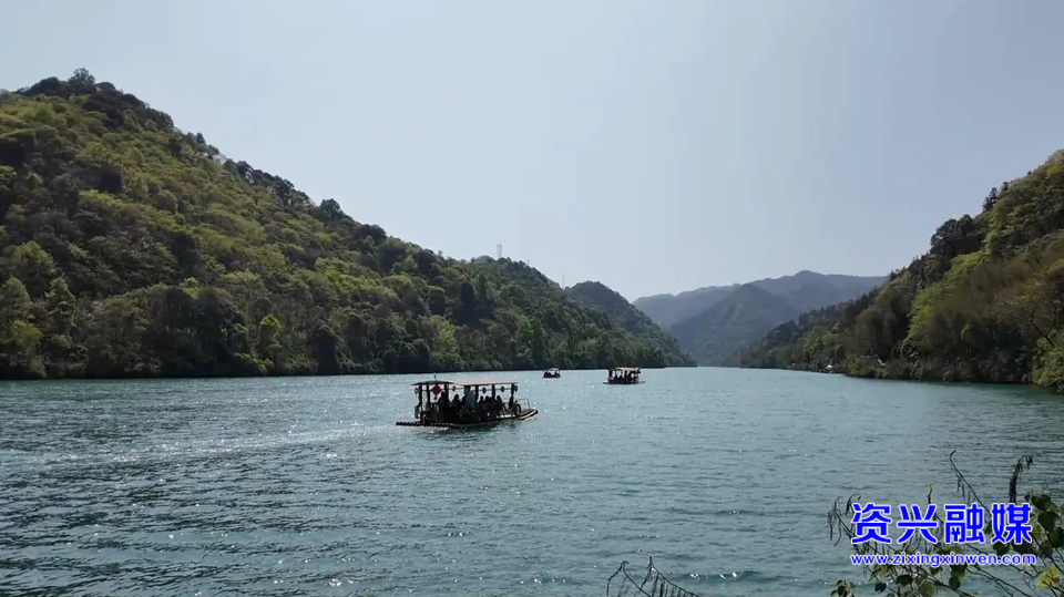 春日的东江湖碧波万顷、满目青翠,江畔步道上,游客们纷纷驻足取景,用镜头定格春日限定的山水盛景。澄澈碧波之上,一艘艘古朴雅致的竹筏缓缓穿行,游客们乘筏泛游,在徐徐清风中沉浸式感受 “船在水中行,人在画中游” 的诗意浪漫,在山水间尽享春日踏青的惬意。