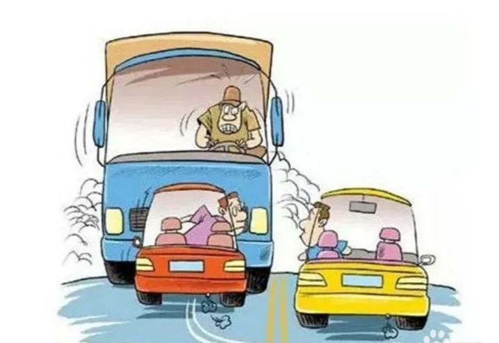 大型车辆在雨天行驶时会给后方的小型车辆带来潜在危险,小型车辆要远离它们。