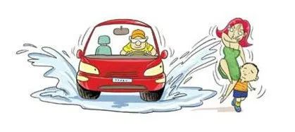 4、注意积水,缓慢通过,不要溅到行人身上水。