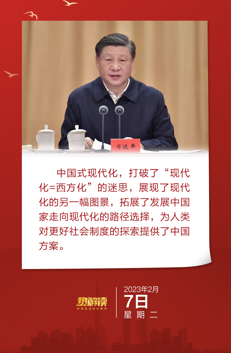 丨热解读丨2月7日,新进中央委员会的委员、候补委员和省部级主要领导干部学习贯彻习近平新时代中国特色社会主义思想和党的二十大精神研讨班在中央党校(国家行政学院)开班,习近平总书记在专题研讨班开班式上亲授这堂“新年第一课”。此次“授课”的主题是中国式现代化。