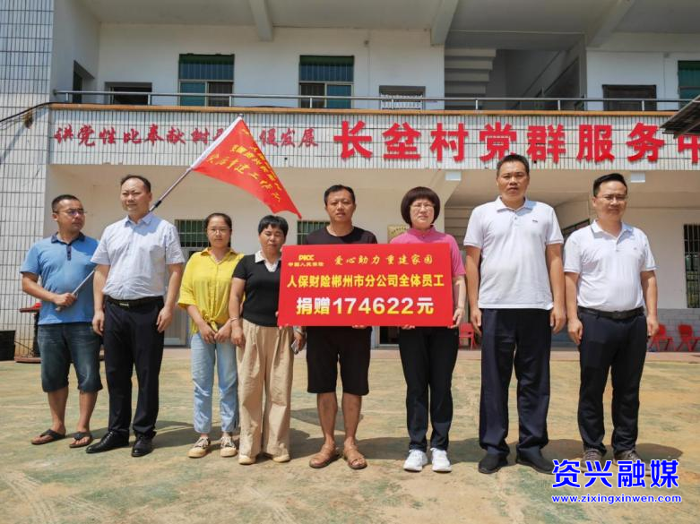 为支持长坌村灾后重建工作,郴州人保财险组织系统干部员工还开展了爱心捐款活动,并于8月底将17.46万元的善款送到长坌村,助力长坌村尽快渡过难关,重建美好家园。