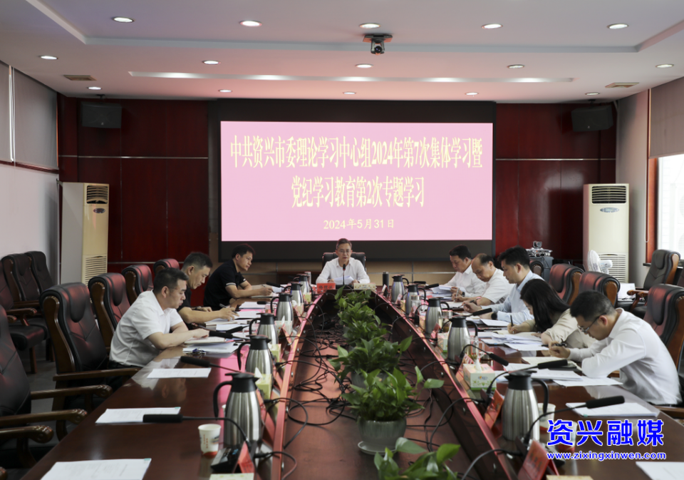 5月31日,中共资兴市委理论学习中心组举行2024年第7次集体学习暨党纪学习教育第2次专题学习,深入学习习近平总书记关于党的建设的重要思想和关于党的自我革命的重要思想、习近平总书记关于党纪学习教育的重要讲话和指示批示精神以及《中国共产党纪律处分条例》。市委书记、市委理论学习中心组组长杨理诚主持学习,市委副书记、市长陈占华参加集体学习。