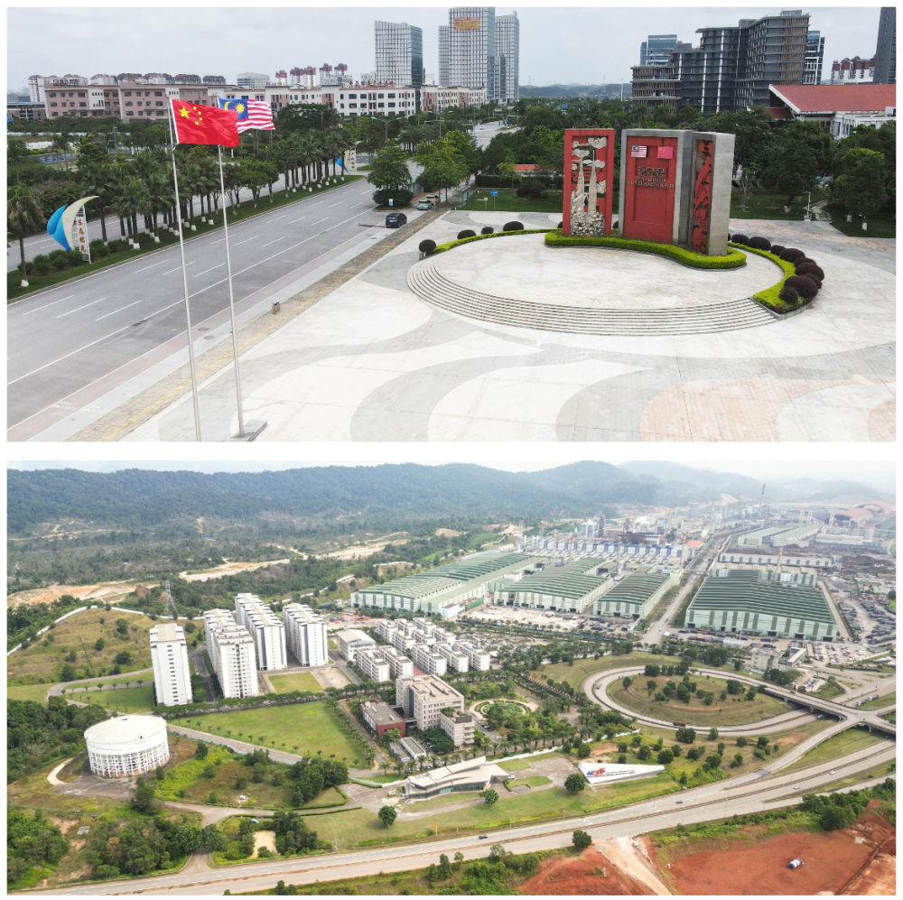 拼版照片:上图为位于广西钦州市的中马钦州产业园,下图为位于马来西亚彭亨州的马中关丹产业园(2024年6月13日摄)。中马钦州产业园和马中关丹产业园于2012年和2013年相继开园,开创了“两国双园”合作新模式。十多年来,“两国双园”合作模式在项目建设、创新合作等方面取得丰硕成果,加快推动中马产业合作走向纵深。