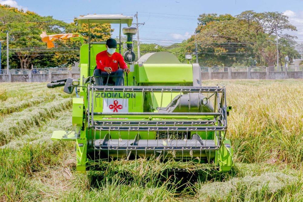 2022年3月25日,农民在菲律宾中吕宋地区新怡诗夏省的中菲农技中心工作。引入中国杂交水稻种植技术使菲水稻产量稳步提高,对维护菲粮食安全、改善农民生活作出贡献。