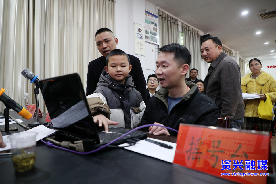 2025年1月3日,在资兴市兴宁镇政府,一名小朋友代表安置家庭在现场进行摇号分房。